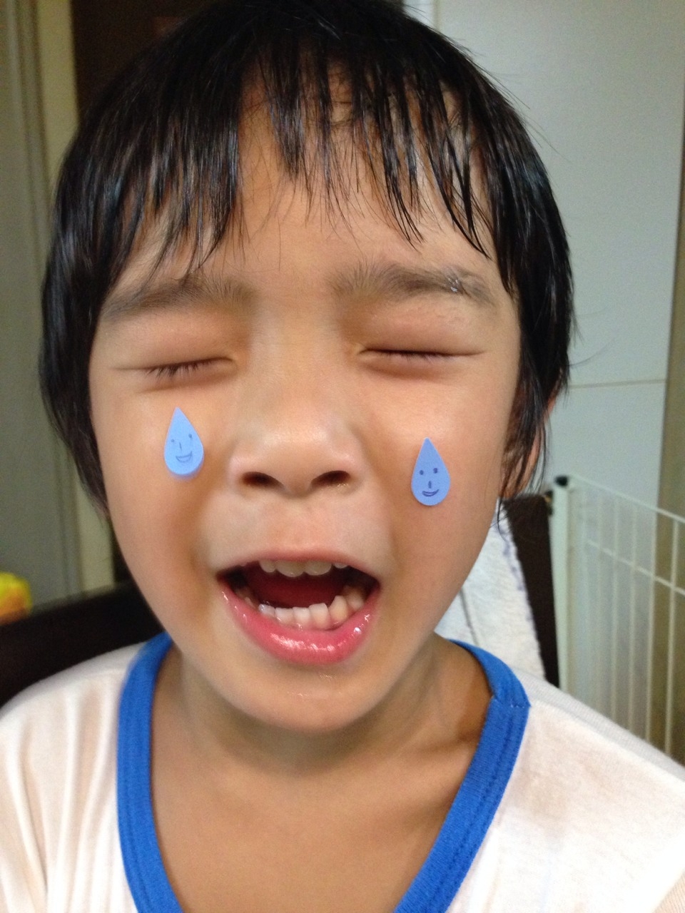 今度は雨つぶシールを上手に貼れるように